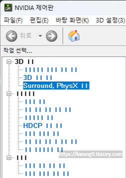 NVIDIA 제어판을 실행하니 다음과 같이 글씨가 깨져 보이는 증상이 나타났다.