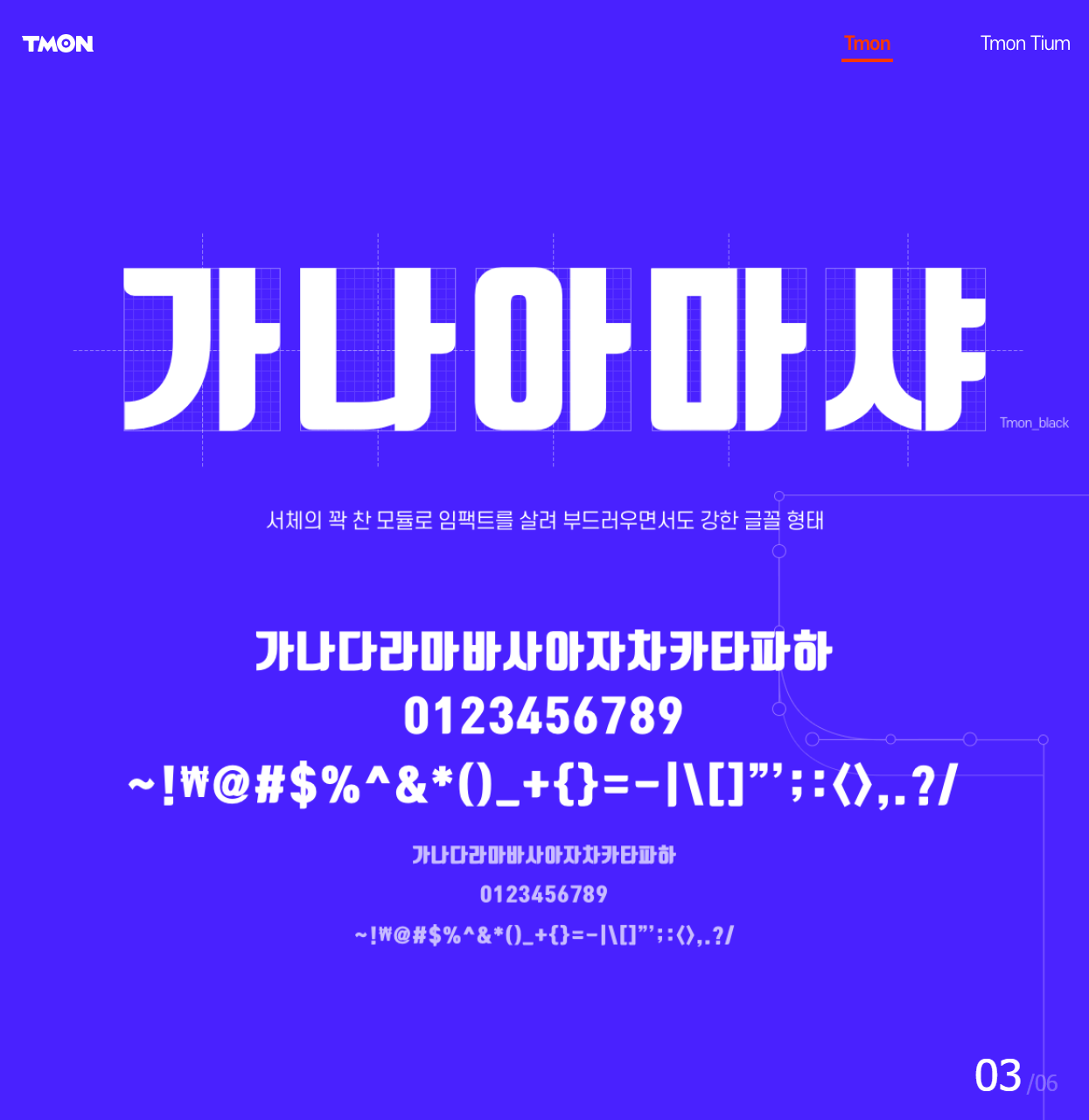 티몬체는 이름대로 티몬에서 개발한 폰트입니다. 깔끔하고 모던한 느낌의 산세리프 폰트로, 웹과 모바일 환경에서 뛰어난 가독성을 자랑합니다. 특히 긴 문장에서도 편안한 읽기감을 제공하는 것이 특징입니다.